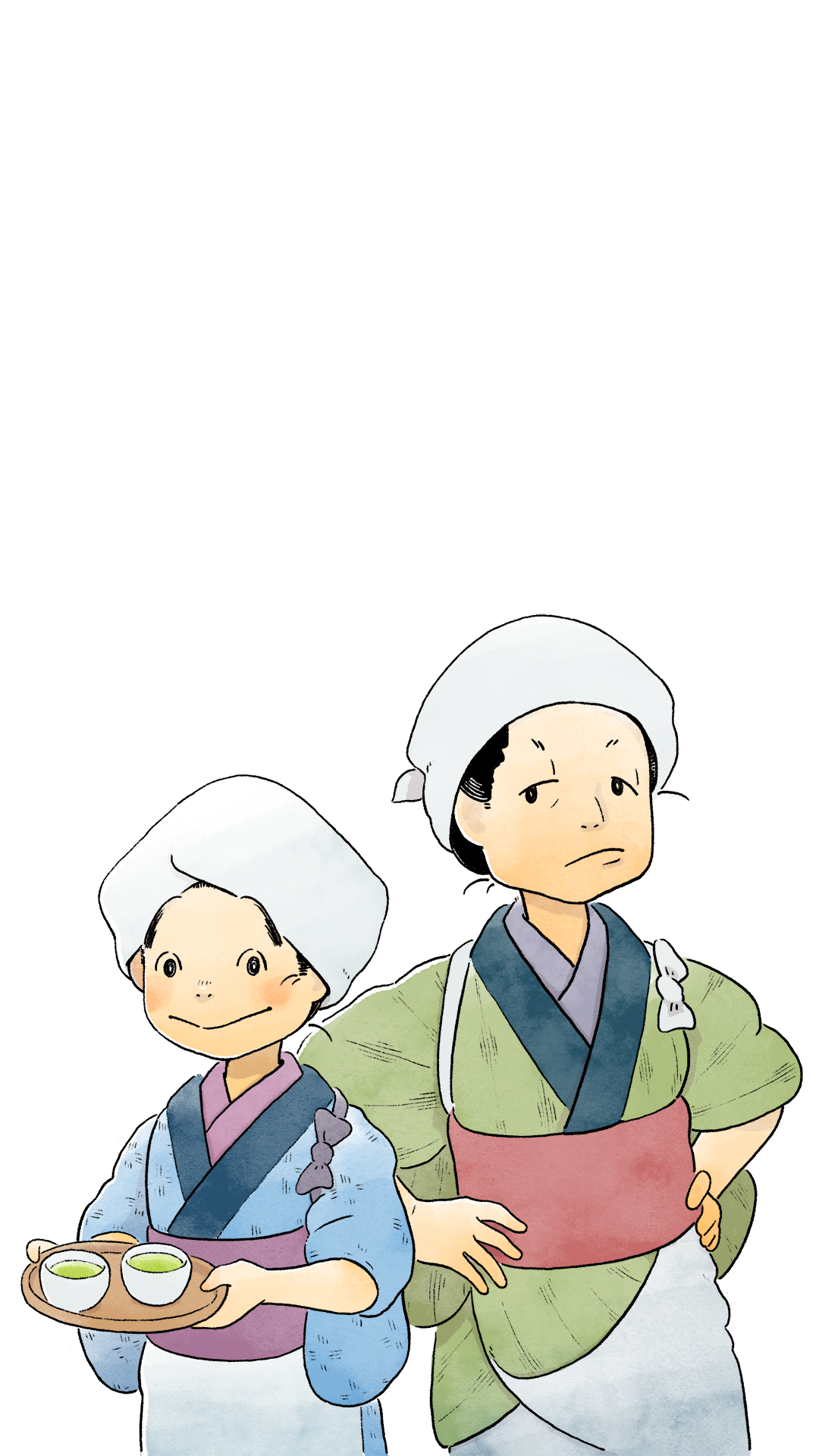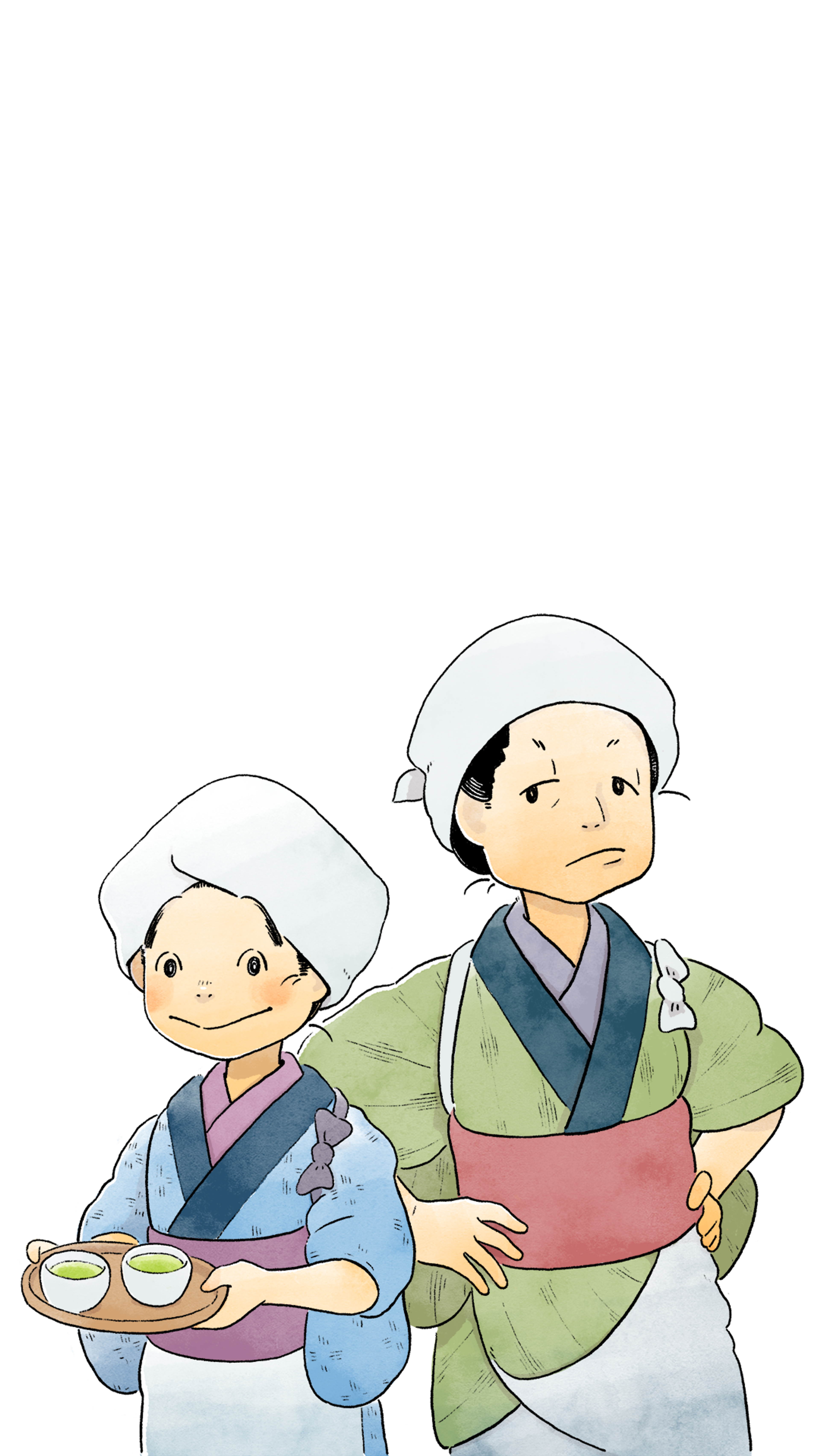 O-tsuyu has spent her whole life in Suruga province, working diligently alongside her family of tea farmers. Though her life may be simple, she loves her village. However, when the mistress of a popular relay station tea house scouts a new server to assist her downstream, O-tsuyu is chosen and must move there, working as her waitress.